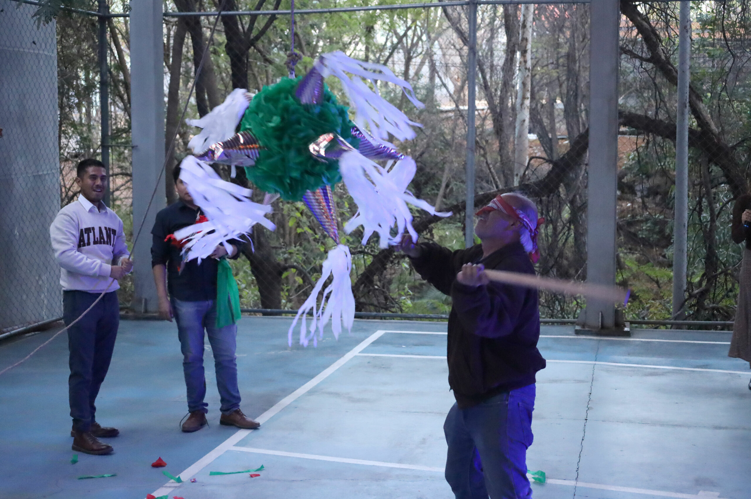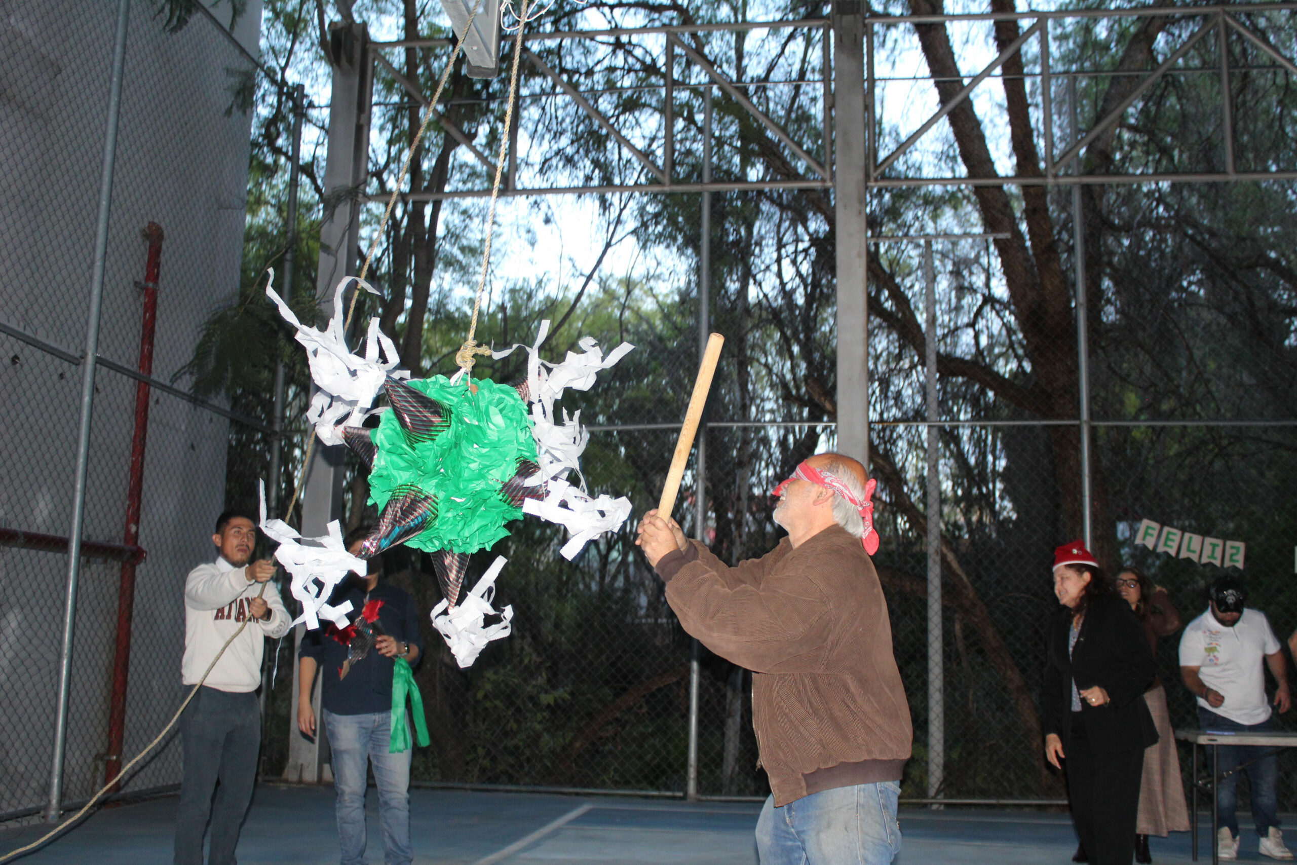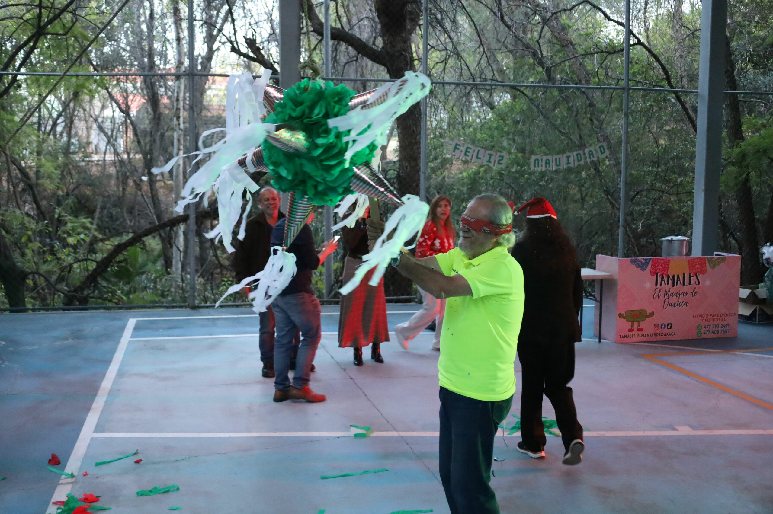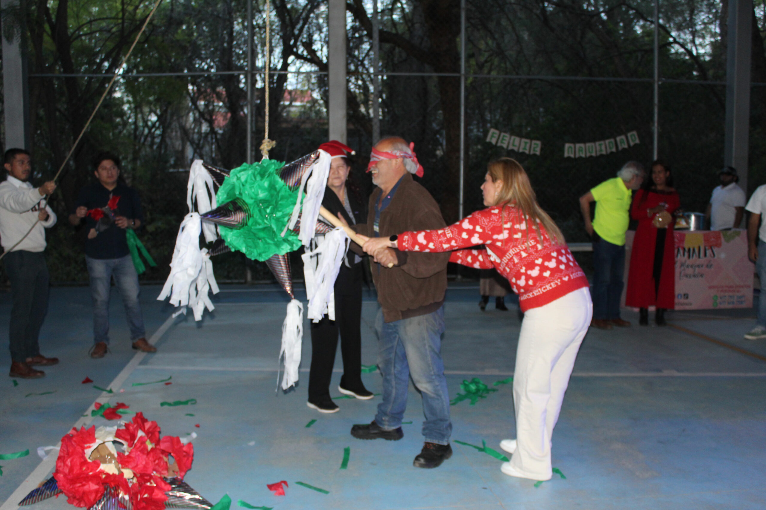 Después de repartir los tamales, elotes y buñuelos, se realizó la recreación de una Posada tradicional con un cántico muy peculiar que divirtió a las y los participantes, quienes recibieron su aguinaldo de dulces y rompieron las tradicionales piñatas.