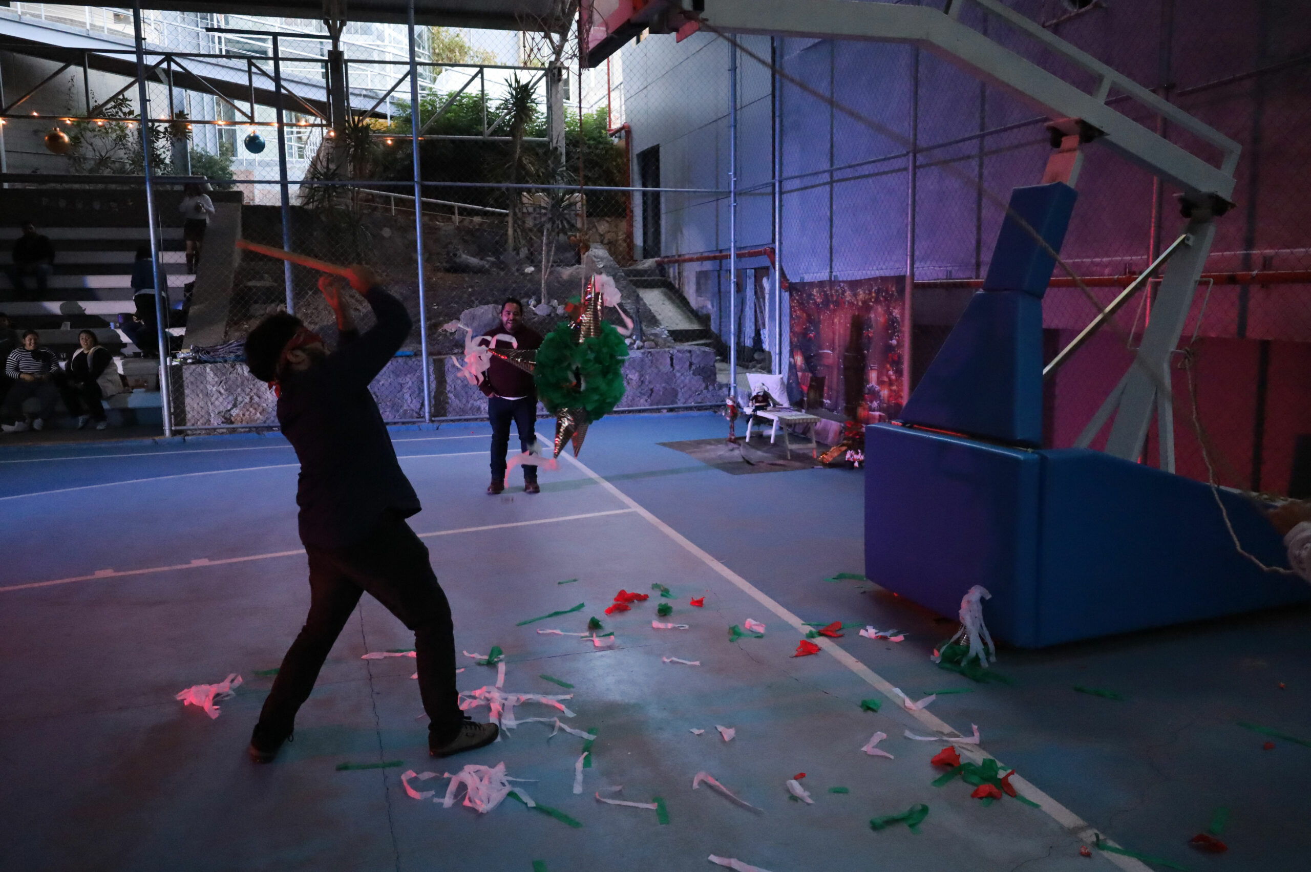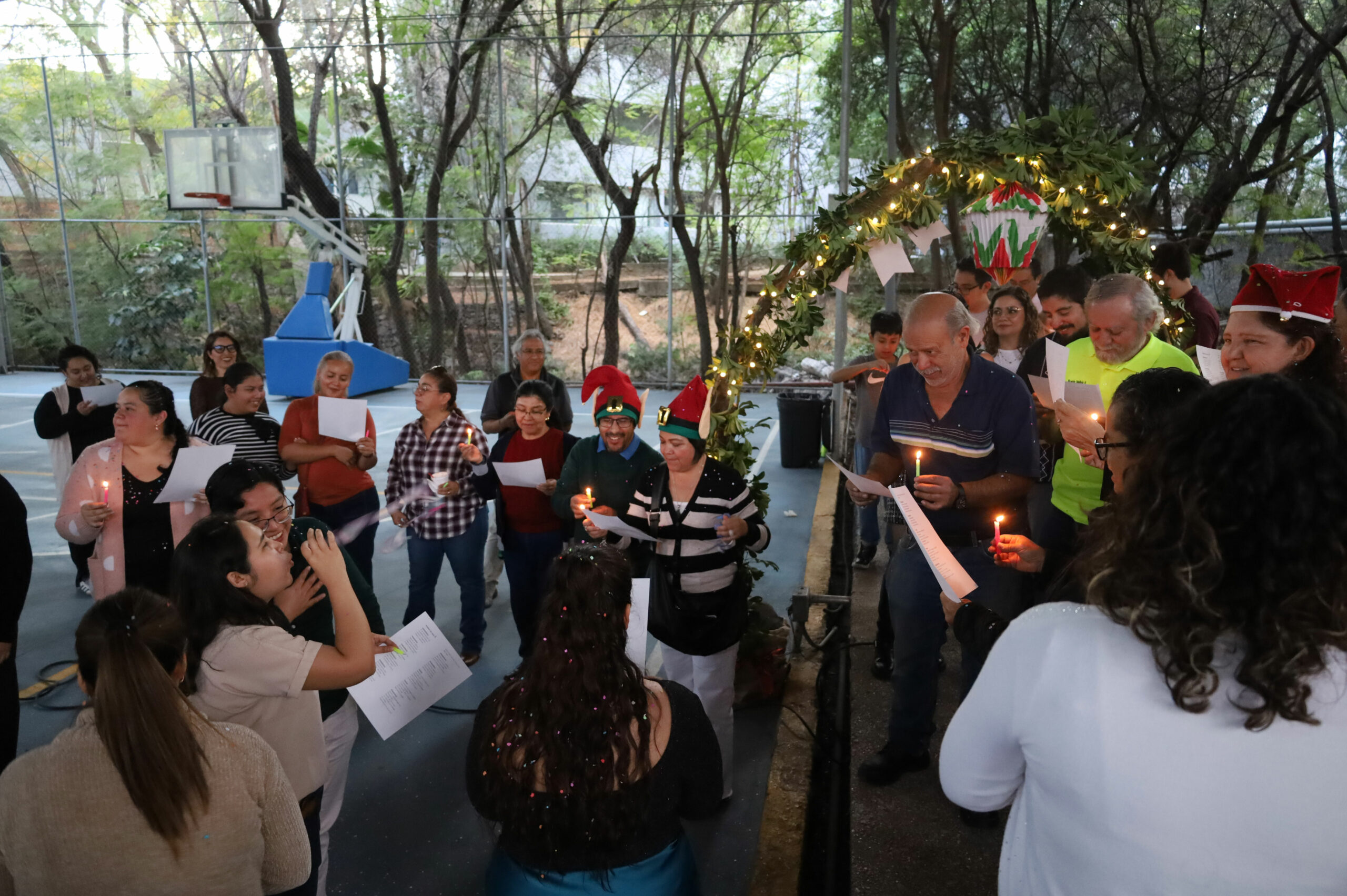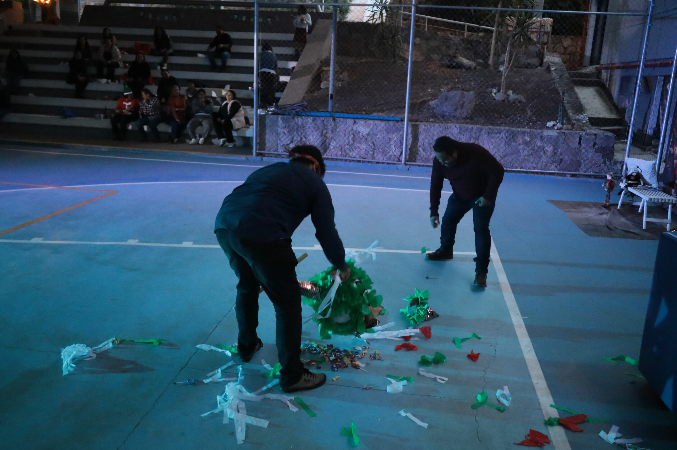 Después de repartir los tamales, elotes y buñuelos, se realizó la recreación de una Posada tradicional con un cántico muy peculiar que divirtió a las y los participantes, quienes recibieron su aguinaldo de dulces y rompieron las tradicionales piñatas.