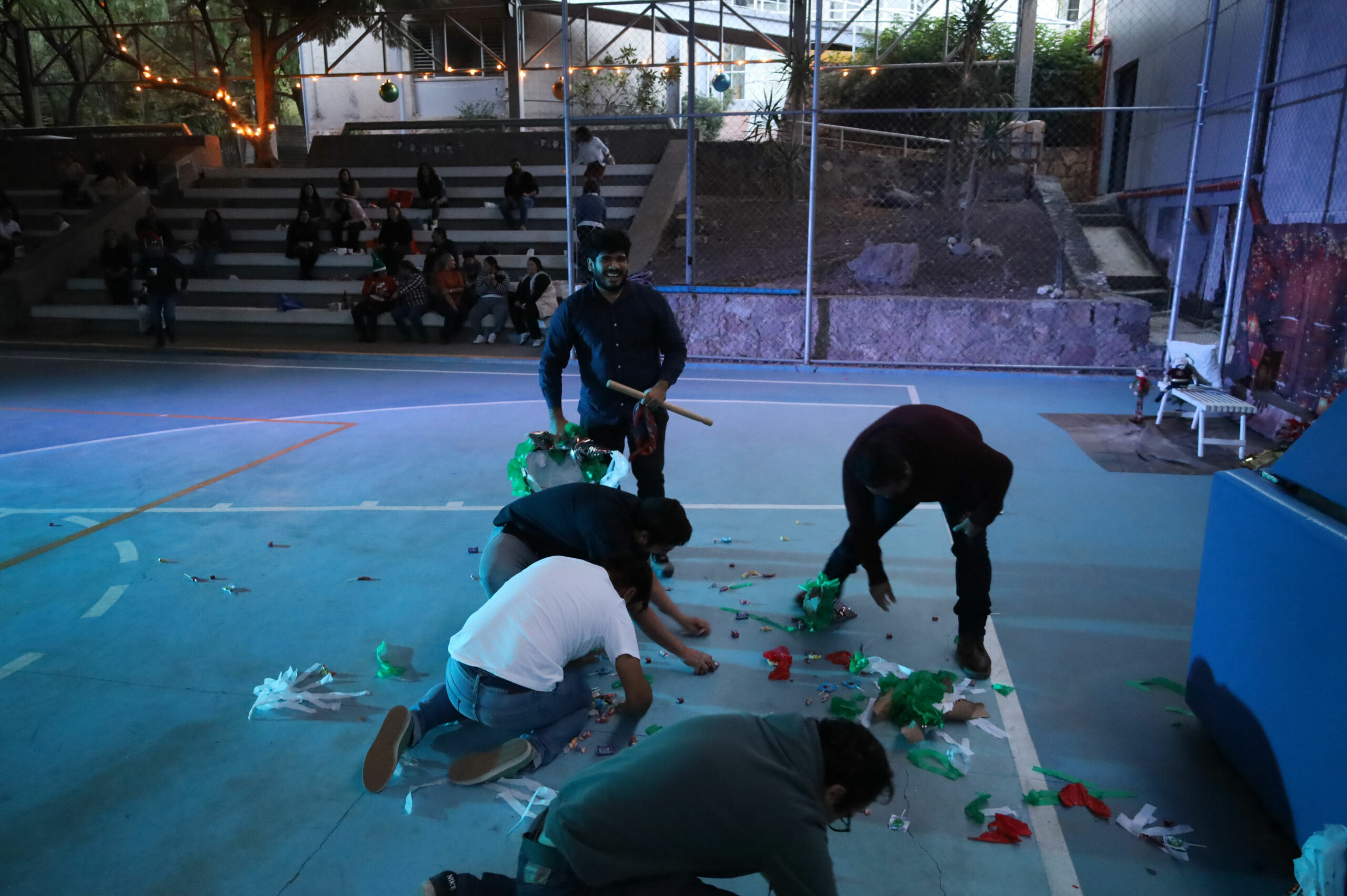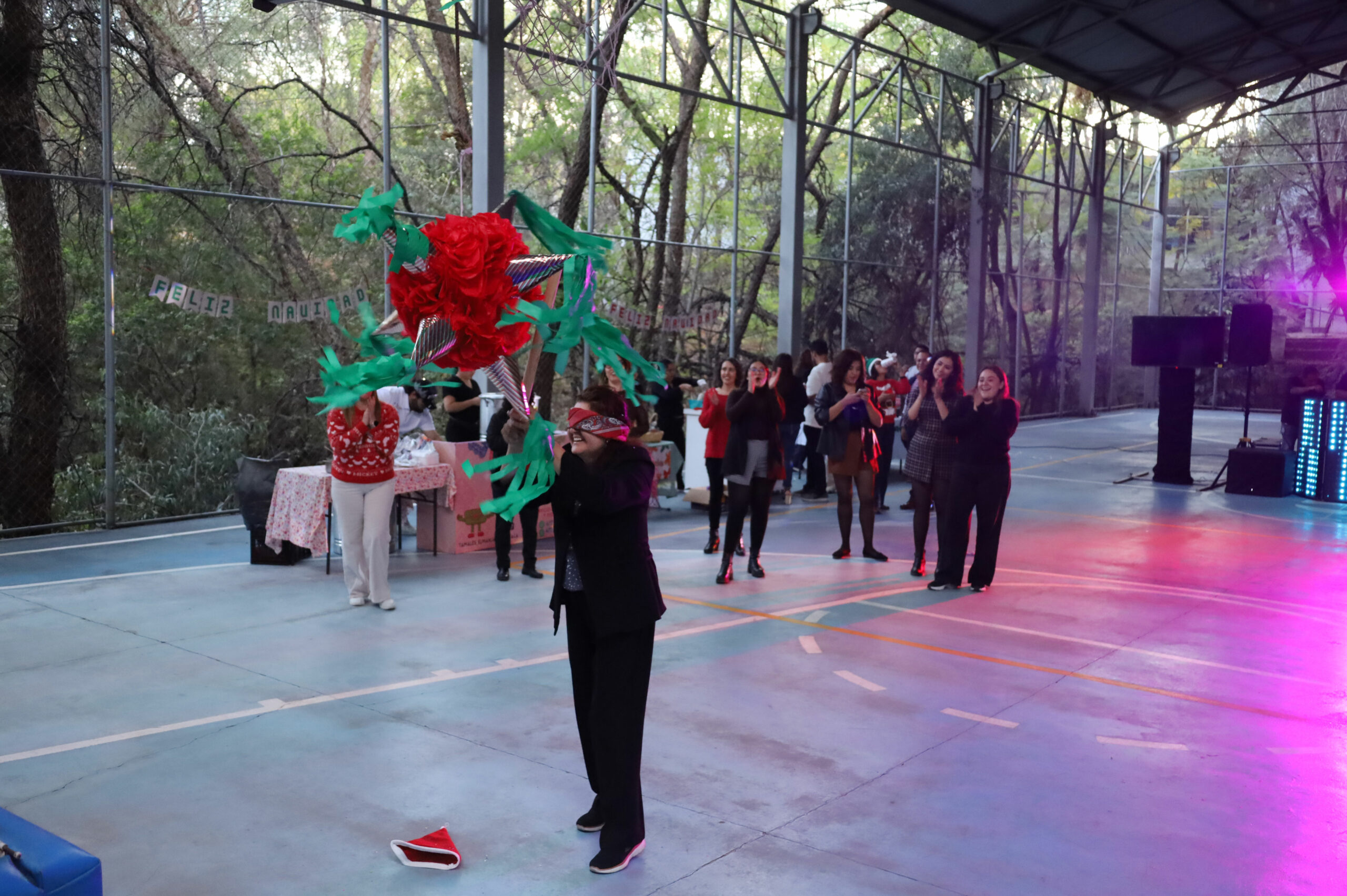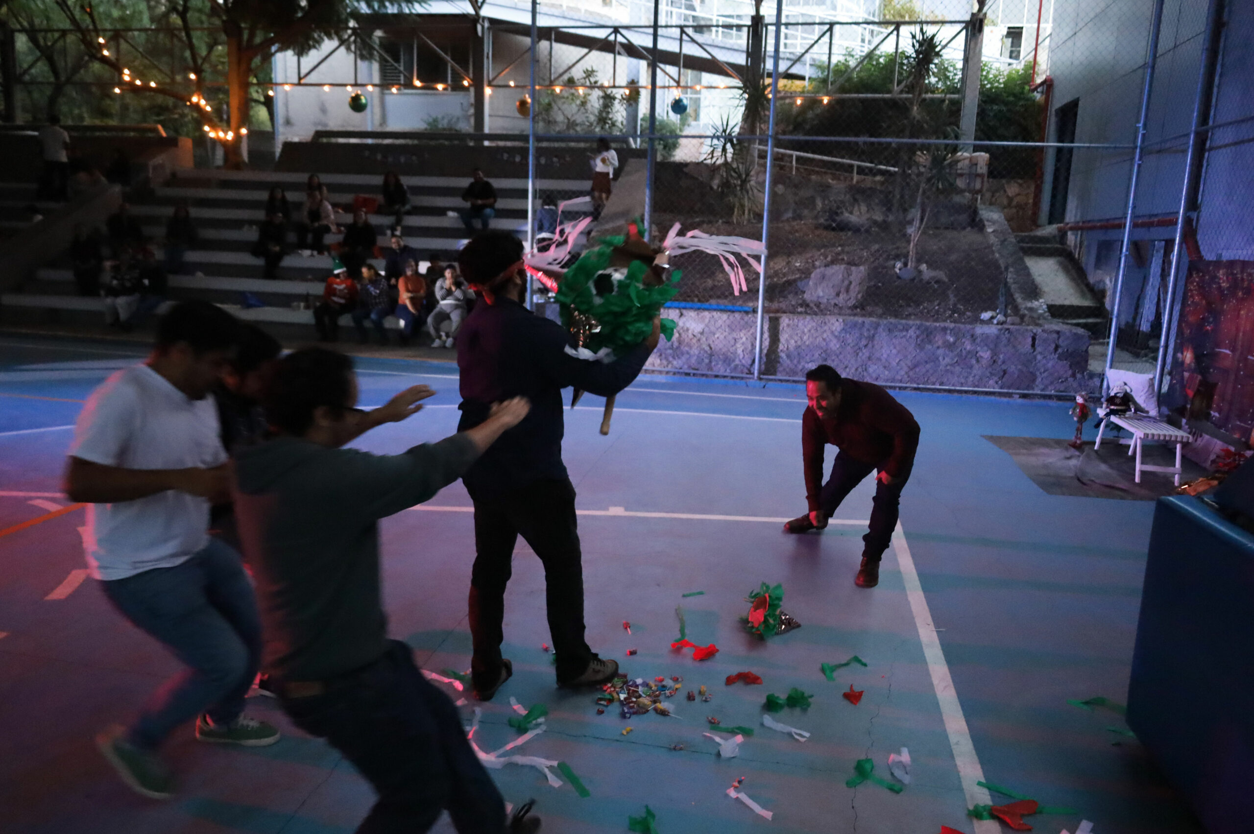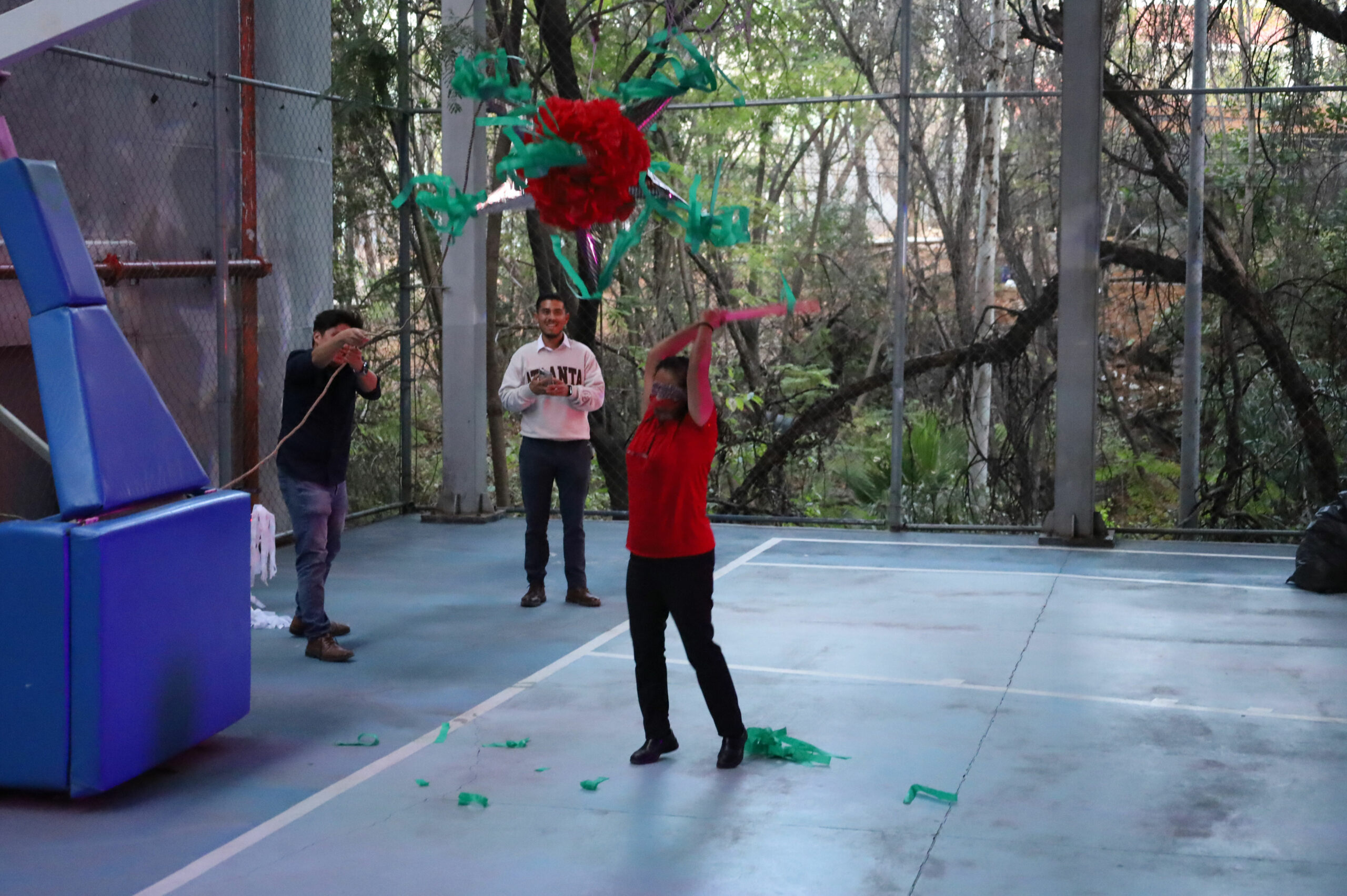 Después de repartir los tamales, elotes y buñuelos, se realizó la recreación de una Posada tradicional con un cántico muy peculiar que divirtió a las y los participantes, quienes recibieron su aguinaldo de dulces y rompieron las tradicionales piñatas.